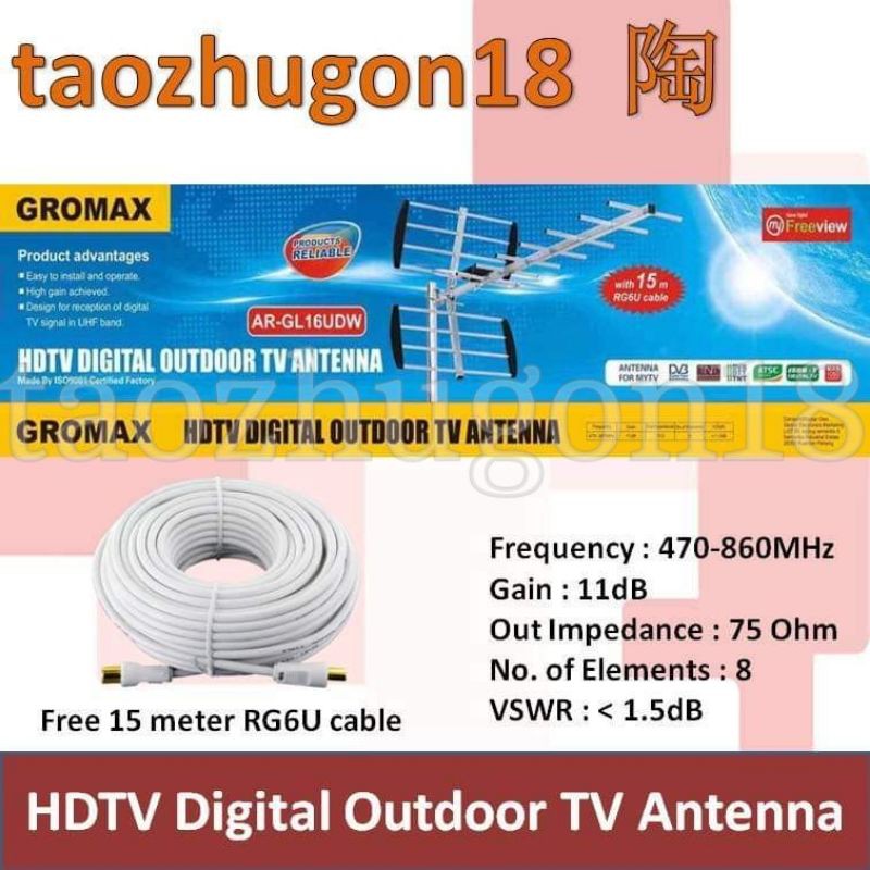 Gromax AR-GL16UDW HDTV Digital Outdoor Antenna Antena Arial | Myfreeview MYTV Digital Channels UHF DVB DVBT2 T2 DTT TNT | Shopee Malaysia